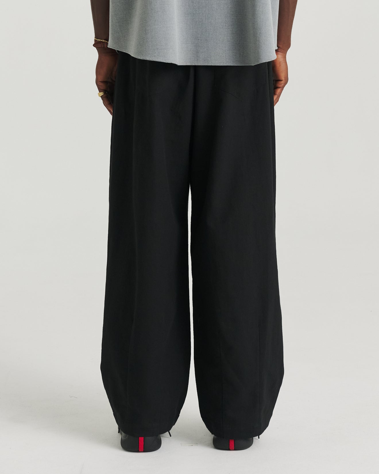 The Easy Pant is a relaxed fitting pant with wide legs through the hip and thigh which taper slightly at the ankle thanks to pleating detail around the hems. the pant features an elasticated waistband, natural twisted cotton drawcords and chain stitch embroidery.