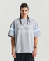 The Knit Panel Tee is an elevated evolution of the trusted Earls Block Tee. Crafted from a heavyweight 310gsm 100% cotton base fabric, it features fully fashioned 100% cotton knit insert stripes along the sleeves and a refined knit collar — adding dimensional texture to a familiar silhouette. Finished with a flocked chest print and tonal embroidery at the back neck, the piece represents a considered progression in fabric and form.