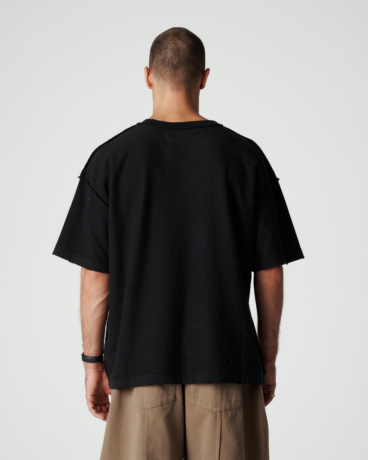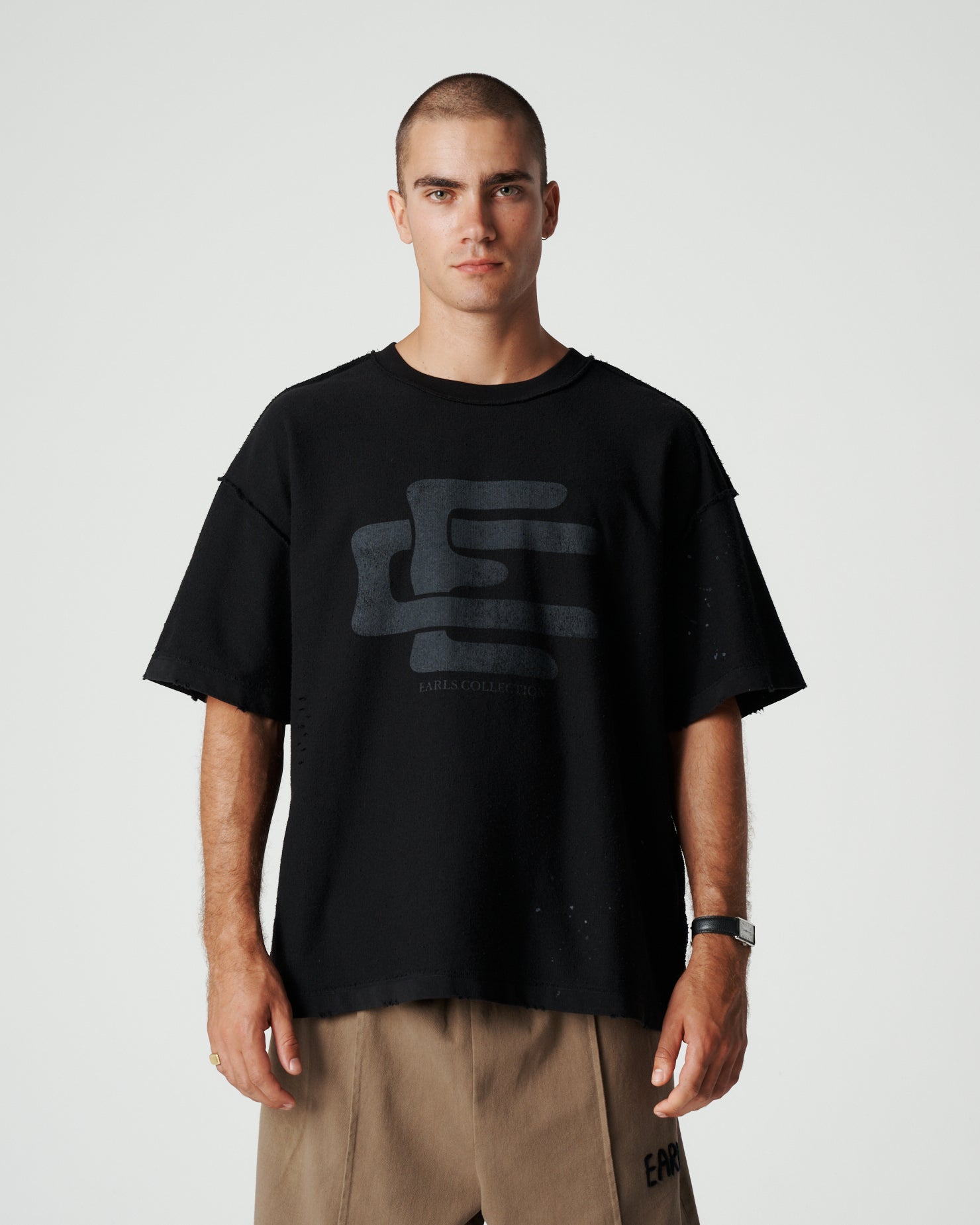 A vintage-inspired essential, the Mono Tee is crafted from heavyweight 240gsm organic cotton and garment-dyed for a rich, lived-in feel. Cut on the reverse for a unique texture, it features distressed seams that add to its worn-in character. A faded EC monogram print completes the design, giving it an effortless, timeworn aesthetic.