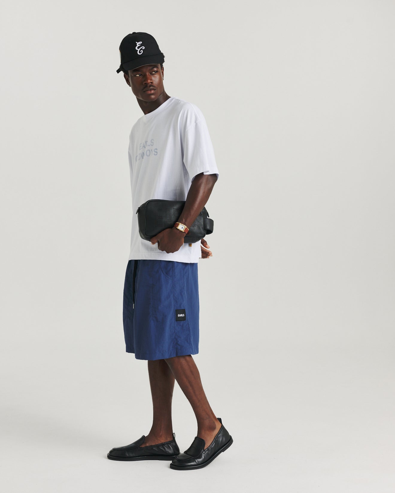 The Nylon Relax Short is a wide, oversized short designed with the same effortless ease as the Relax Pant. Built for comfort and fluid movement, it features an elasticated waistband with internal drawcords for an adaptable fit. Rounded pockets bring a soft utilitarian touch, while dart detailing and an 'Earls' patch at the side leg elevate its minimal finish. Cut from a durable, water-resistant fabric, these shorts are suitable for swimming.