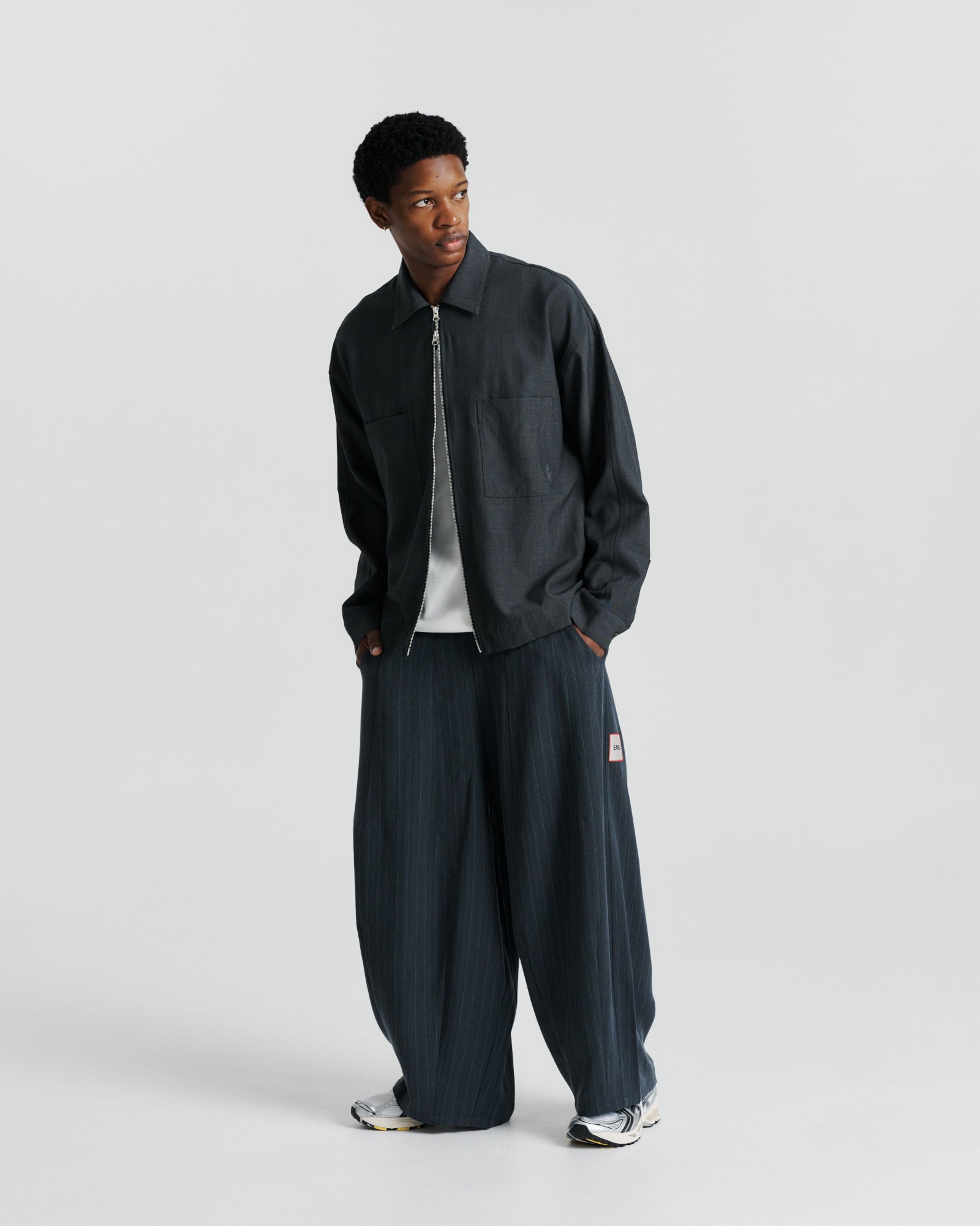 The Relax Pant is an exaggerated wide-leg silhouette built for effortless wear and fluid movement. Designed with an elasticated waistband and internal drawcords, it offers an adaptable fit that complements its relaxed drape. Rounded pockets add a soft, utilitarian edge, while an 'Earls' patch at the side leg and subtle dart detailing provide elevated finishing touches. Crafted from a smooth, stretch-infused fabric, this pant combines structure with all-day comfort.