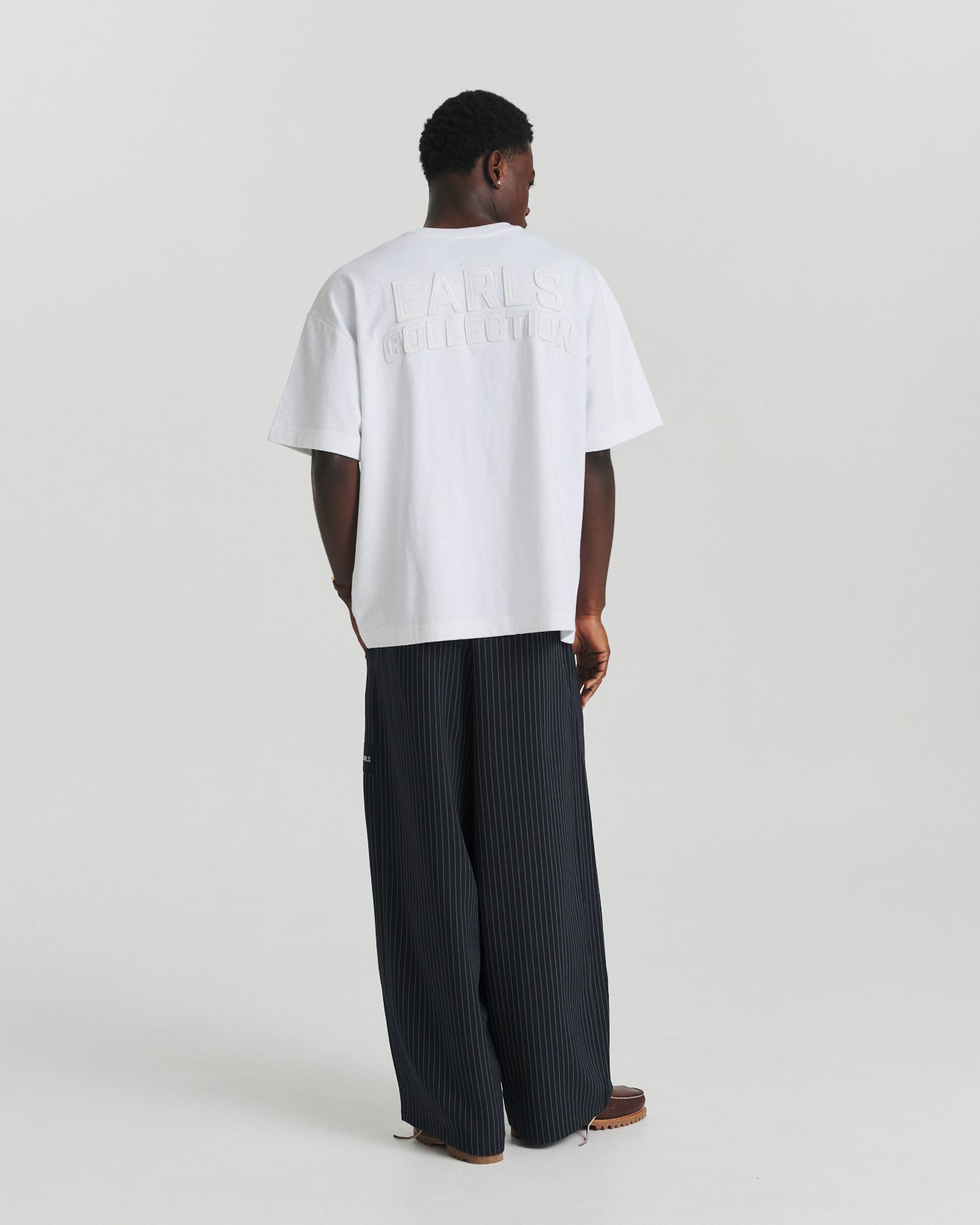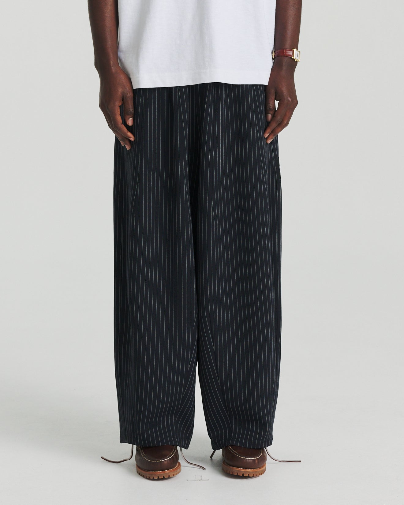 The Relax Pant is an exaggerated wide-leg silhouette built for effortless wear and fluid movement. Designed with an elasticated waistband and internal drawcords, it offers an adaptable fit that complements its relaxed drape. Rounded pockets add a soft, utilitarian edge, while an 'Earls' patch at the side leg and subtle dart detailing provide elevated finishing touches. Crafted from a smooth, stretch-infused fabric, this pant combines structure with all-day comfort.