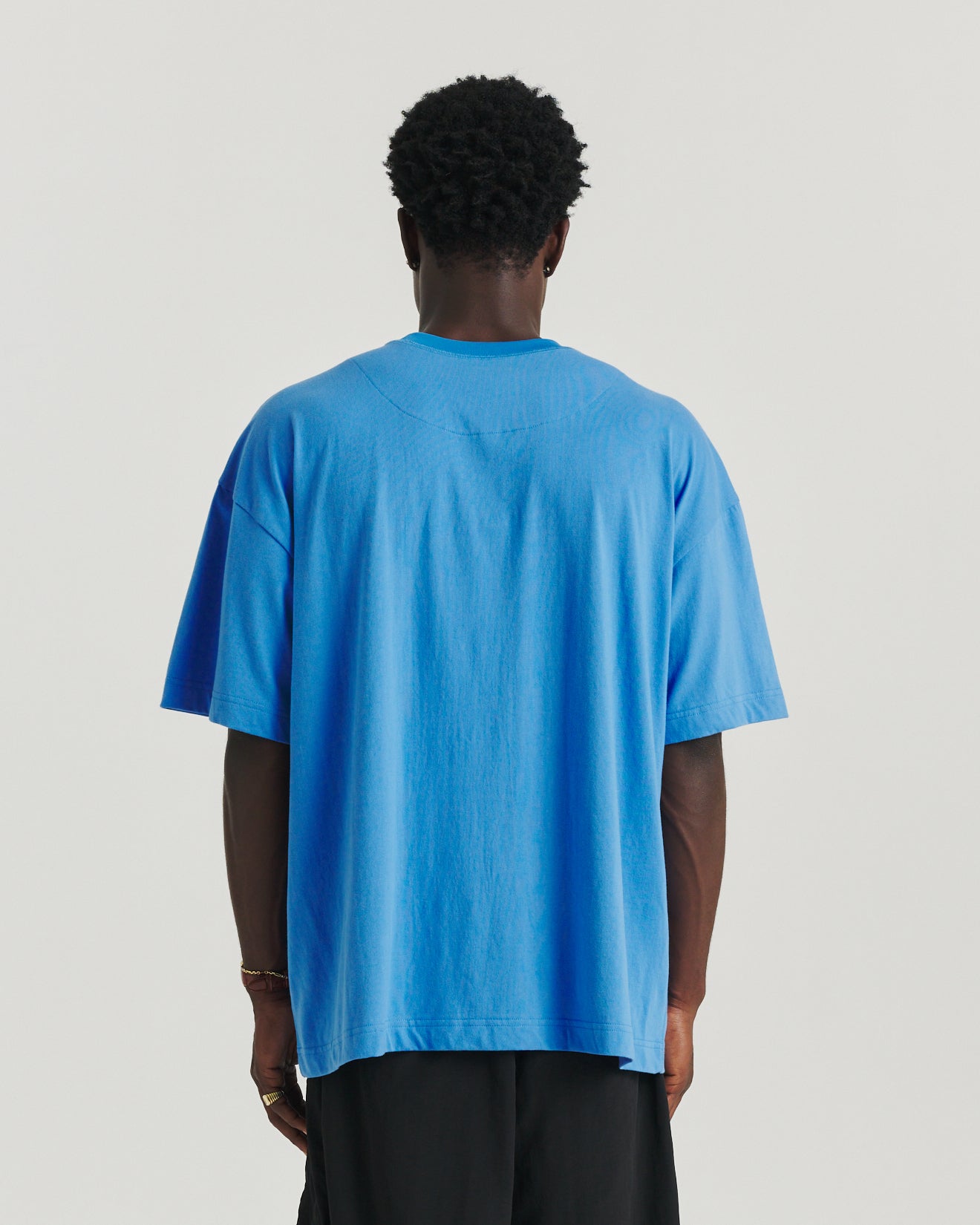 The Reverse Print Tee is a lightweight take on a boxy, slightly cropped silhouette. Crafted from 160gsm cotton, it’s designed for breathability with a soft, relaxed hand feel. Screen printing is applied to the reverse and intended to show through the fabric, creating a subtle, worn-in graphic effect. Overlocked seams and a slightly contrasting neck rib add understated character, while earls collection size labelling and a pip label at the wearer’s left side seam finish the piece with considered detail.