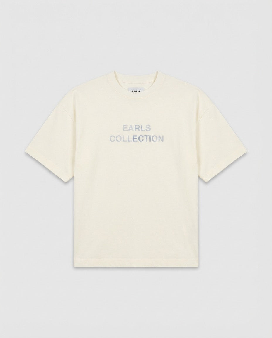 The Reverse Print Tee is a lightweight take on a boxy, slightly cropped silhouette. Crafted from 160gsm cotton, it’s designed for breathability with a soft, relaxed hand feel. Screen printing is applied to the reverse and intended to show through the fabric, creating a subtle, worn-in graphic effect. Overlocked seams and a slightly contrasting neck rib add understated character, while earls collection size labelling and a pip label at the wearer’s left side seam finish the piece with considered detail.