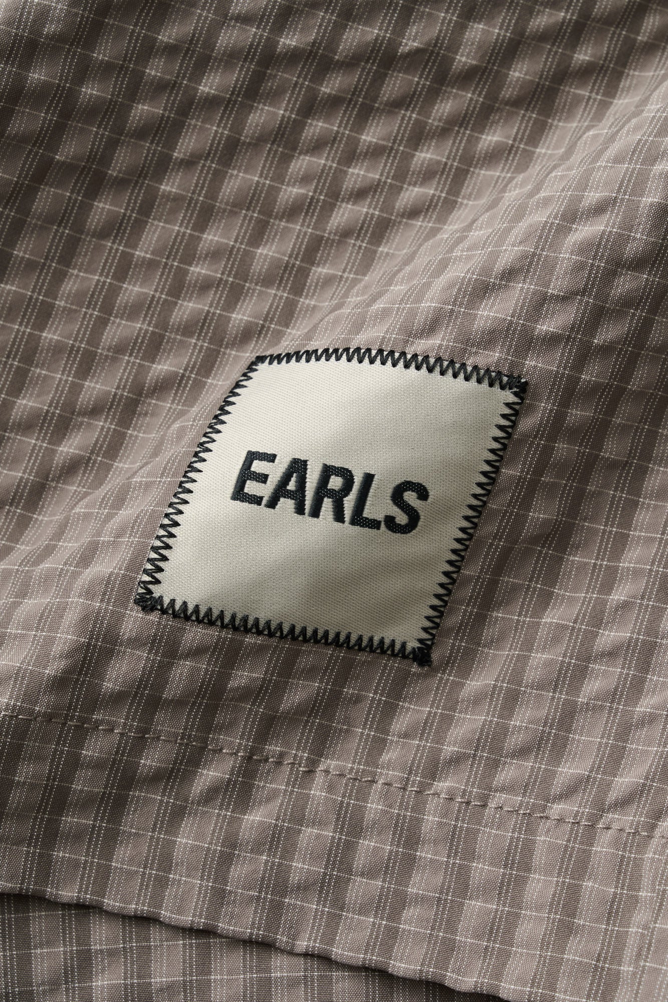 The Seersucker Swim Short is a lightweight, slightly above-the-knee style built for warm-weather wear. Constructed from a textured 98% polyester, 11% rayon seersucker fabric, it offers quick-drying performance with subtle structure and comfort. The short features polyester mesh pocket lining for drainage, a natural twisted cotton drawcord at the waist, and is finished with an ‘Earls’ woven label for a refined touch.