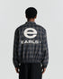 The Sport Bomber is a statement outer layer built on bold proportions and rich detailing. Oversized, boxy, and slightly cropped, it’s constructed from a specialty tartan fabric with a subtle stretch, balanced by a breathable polyester mesh lining. At the back, oversized felt ‘E’ and ‘Earls’ appliqués command attention, while custom-moulded ‘E’ zipper pullers and a two-way front zip deliver elevated function. Designed as a modern reinterpretation of a sporting classic, it merges heritage patterning with contemporary street sensibility.