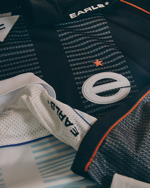 Built with an exaggerated, boxy, oversized fit, the jersey is constructed from heavy 100% polyester square weave for a rich feel, with mesh panelling and sleeve piping details for a functional, yet enduring finish. Detailed with heavy felt applique, sublimated print, screen-printed logos, and the signature ‘Earls Authentic’ woven label, it merges performance-inspired craft with heritage storytelling — a modern homage to sport’s golden age.